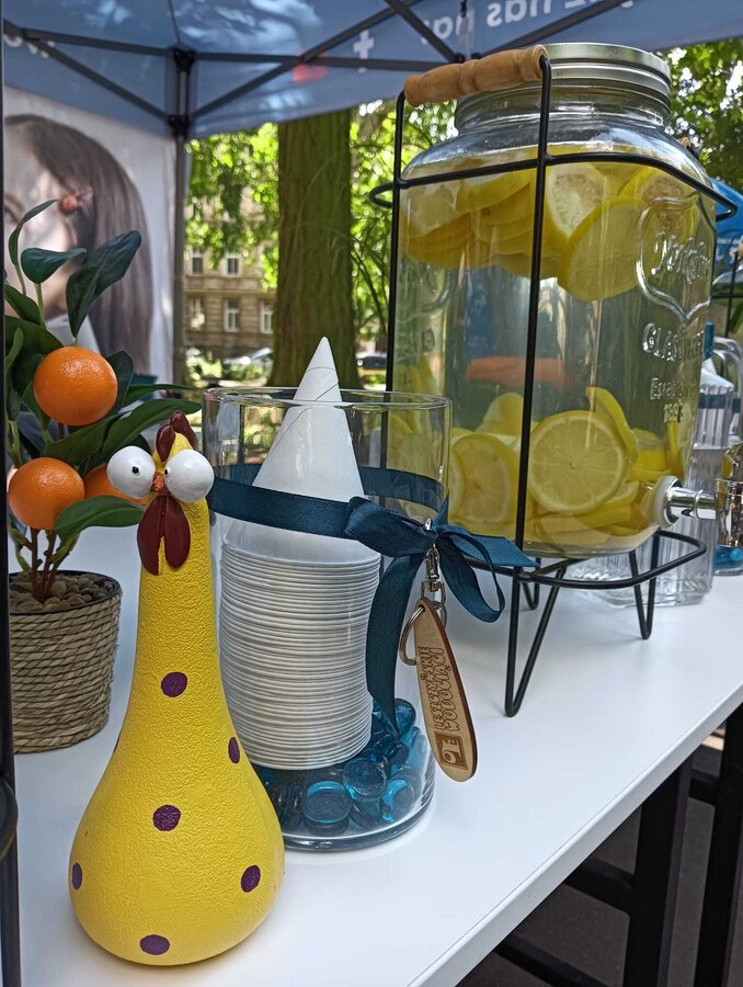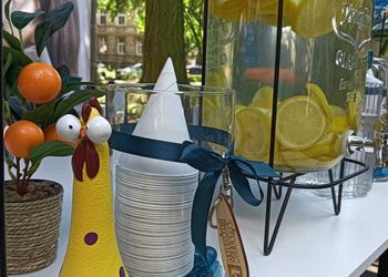 Częstowaliśmy wodą w wersji z cytrusami, miętą oraz z ogórkiem i melonem. Atrakcją była również ścianka zabaw wodnych i obrazkowy świat wstążek. Ponadto dla najmłodszych przygotowaliśmy stolik z kolorowankami o wodzie.