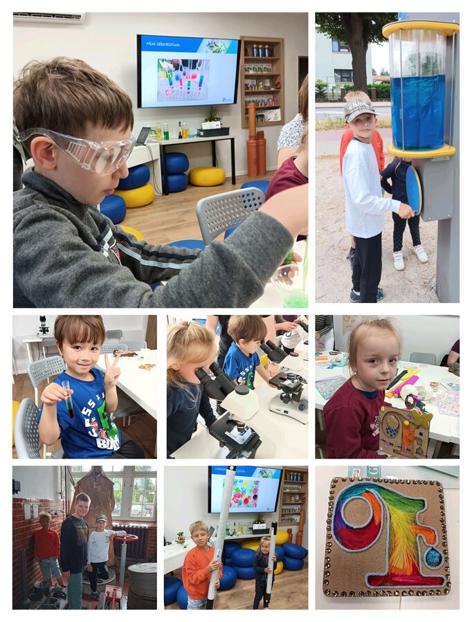 Wraz z 15-osobową grupą zwiedziliśmy Muzeum Wodociągów, kręciliśmy wirem wodnym na ścieżce edukacyjnej, zrobiliśmy tęczę w probówce, prowadziliśmy obserwacje mikroskopowe oraz stworzyliśmy kreatywne prace z zainspirowane logotypem Wodociągów Leszczyńskich.