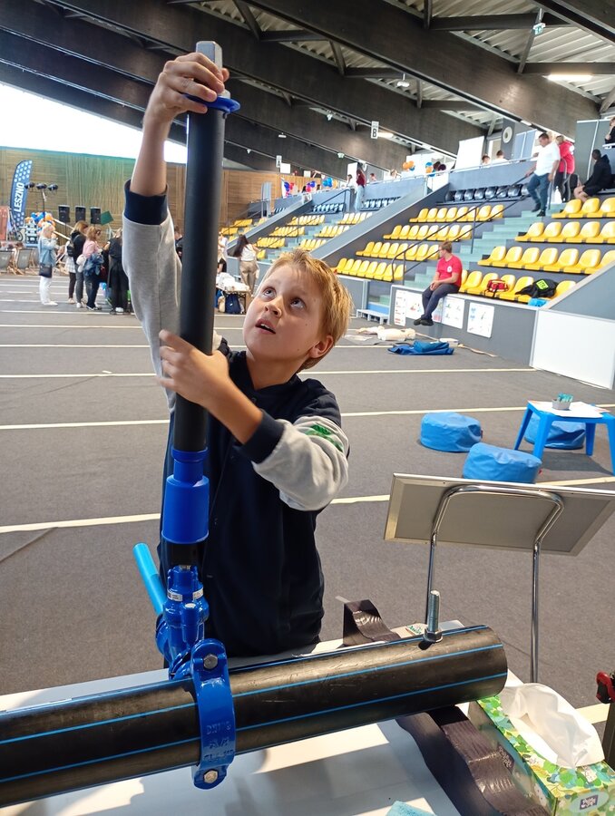 Na naszym stoisku przygotowaliśmy dla mieszkańców atrakcje branżowe. Odwiedzających czekały nie lada zadania do samodzielnego wykonania - montaż nawiertki i przyłącza na sieci wodociągowej oraz montaż wodomierza. Ponadto można było zapoznać się z ekspozycją kampanii Śmieć zatyka sieć oraz obejrzeć rury kanalizacyjne od środka dzięki kamerze do ich inspekcji. Dla najmłodszych... i nie tylko ;-) przygotowaliśmy "wodociągowe" kolorowanki.