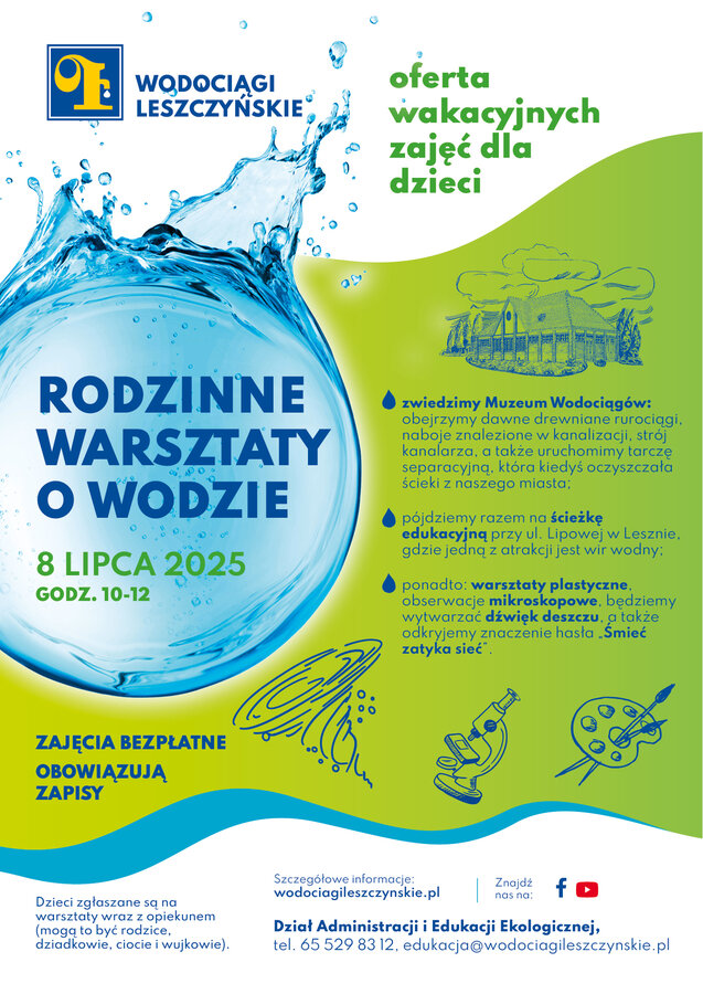 Letnie Rodzinne warsztaty o wodzie odbędą się jutro, tj. 8 lipca w naszej nowej salce edukacyjnej