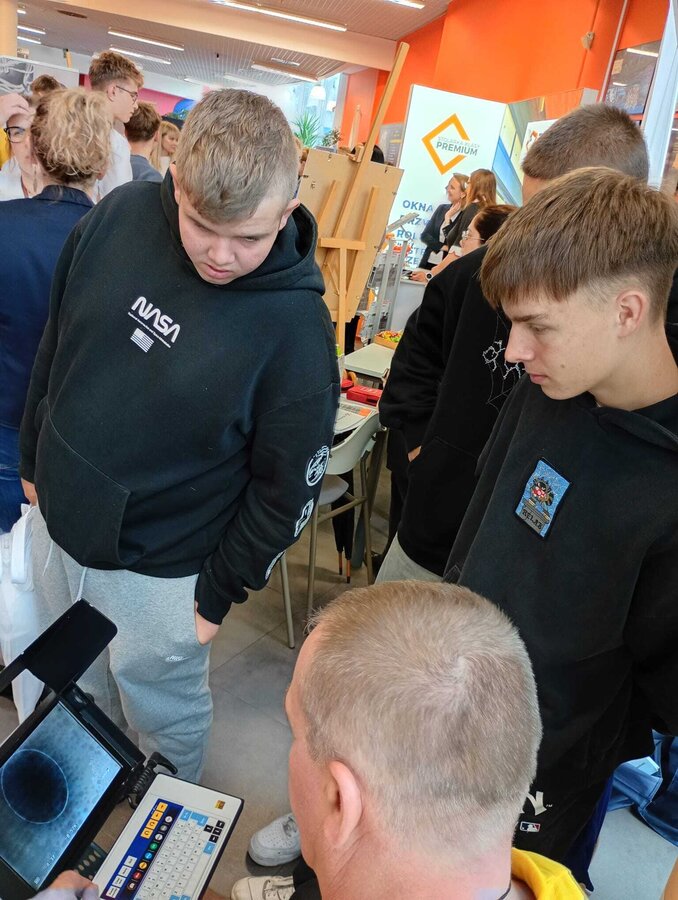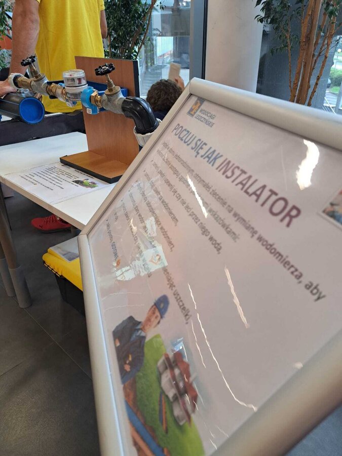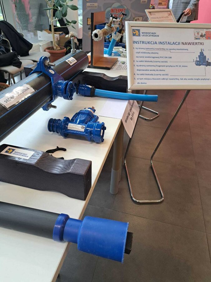 Wodociągi Leszczyńskie aktywnie uczestniczyły w wydarzeniu, prezentując swoją branżę i oferując możliwość praktycznych ćwiczeń na stoisku, takich jak montaż nawiertki i wodomierza oraz obsługa kamery do inspekcji kanalizacji.