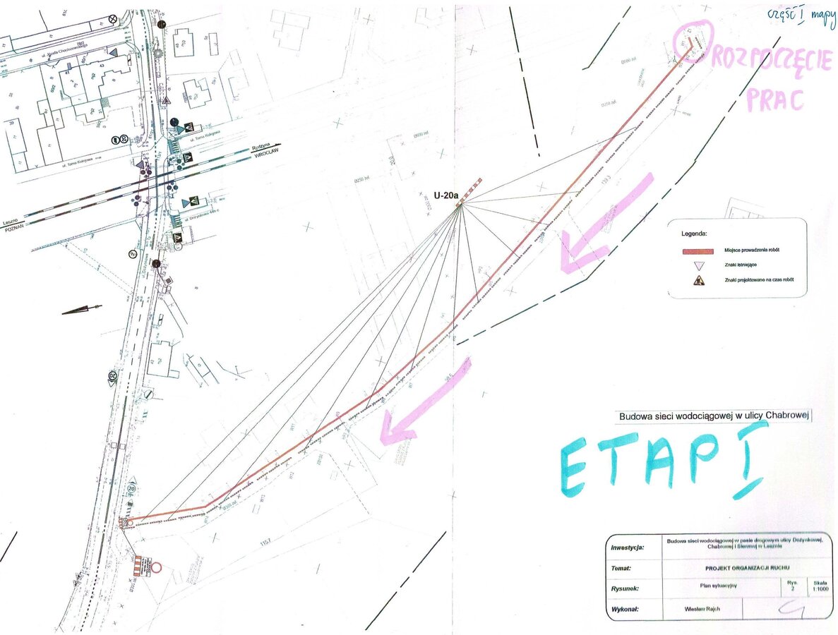 - Przebudowa sieci wodociągowej rozpocznie się od ul. Chabrowej (przy torach), a następnie Wykonawca będzie kierował się w stronę ul. Dożynkowej. W roku 2022 realizowany będzie I etap inwestycji.