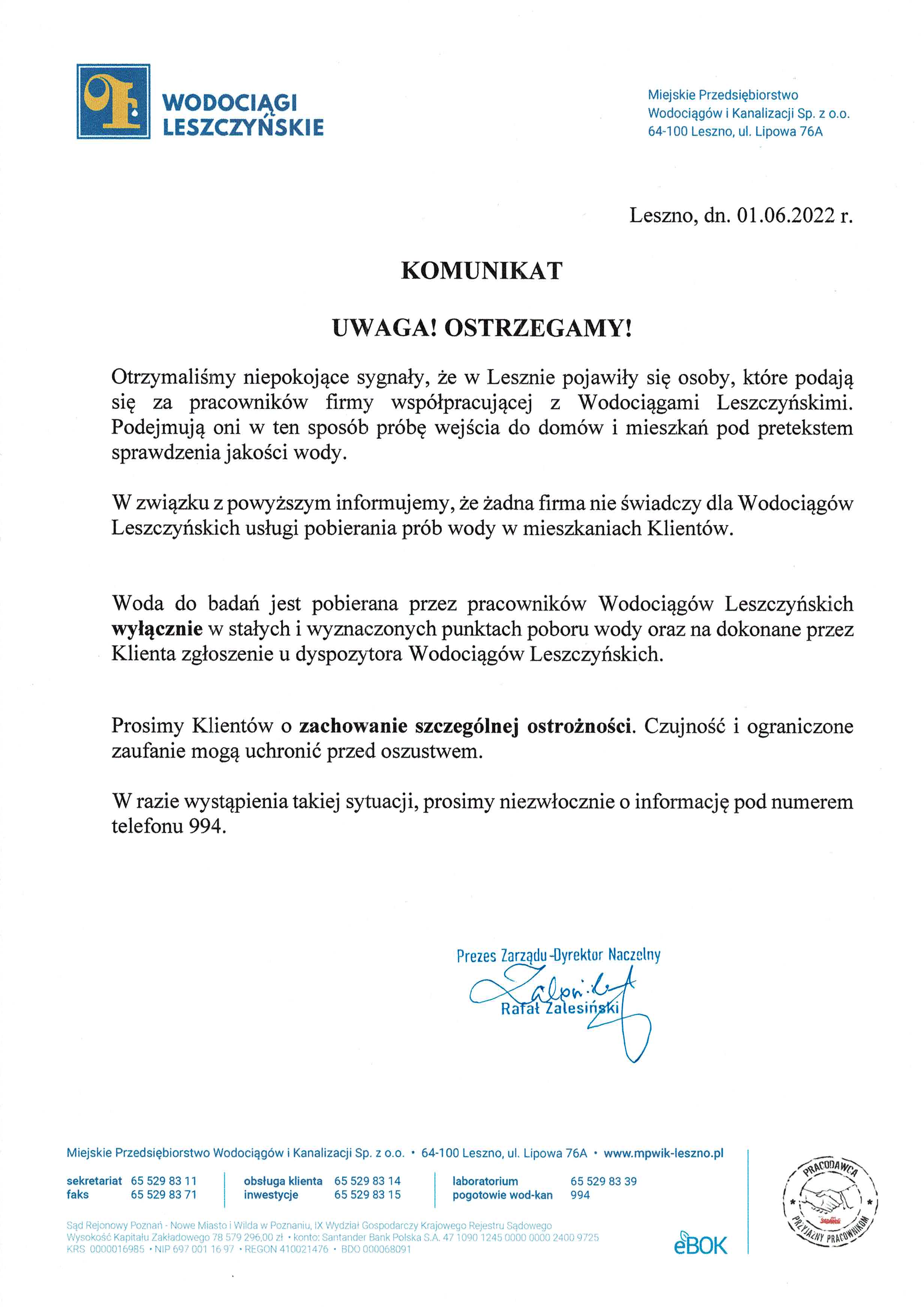Nowe taryfy 18.07.2023 - 17.07.2026 – informacja Zarządu