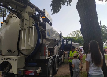 Dzieci miały okazję poznać nasz samochód nazywany kretogulikiem oraz zdobyć odznakę operatora wozu specjalistycznego