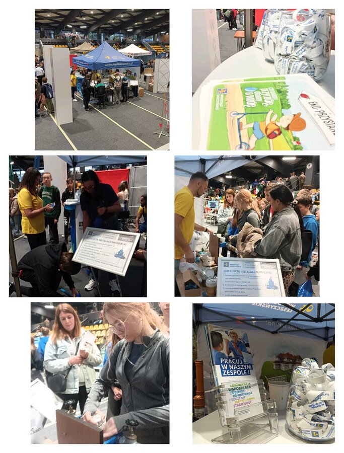 Frekwencja dopisała. Na stoisku Wodociągów Leszczyńskich nie próżnowaliśmy. Zaprezentowaliśmy zawód w dziedzinie techniki inżynierii sanitarnej. Uczniowie mogli sprawdzić swoje umiejętności w roli instalatora sieci wodociągowej oraz konserwatora sieci kanalizacyjnej. Młodzież miała okazję wykonać montaż nawiertki oraz wodomierza. Można było zobaczyć także specjalistyczną kamerę do wykonywania inspekcji kanalizacji oraz wóz dwufunkcyjny do wykonywania udrożnienia sieci kanalizacyjnych. Za wykonane poprawnie zadania i zdobyte "certyfikaty" uczniowie otrzymywali niespodzianki.