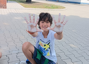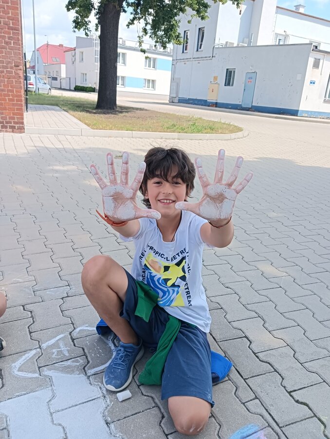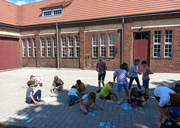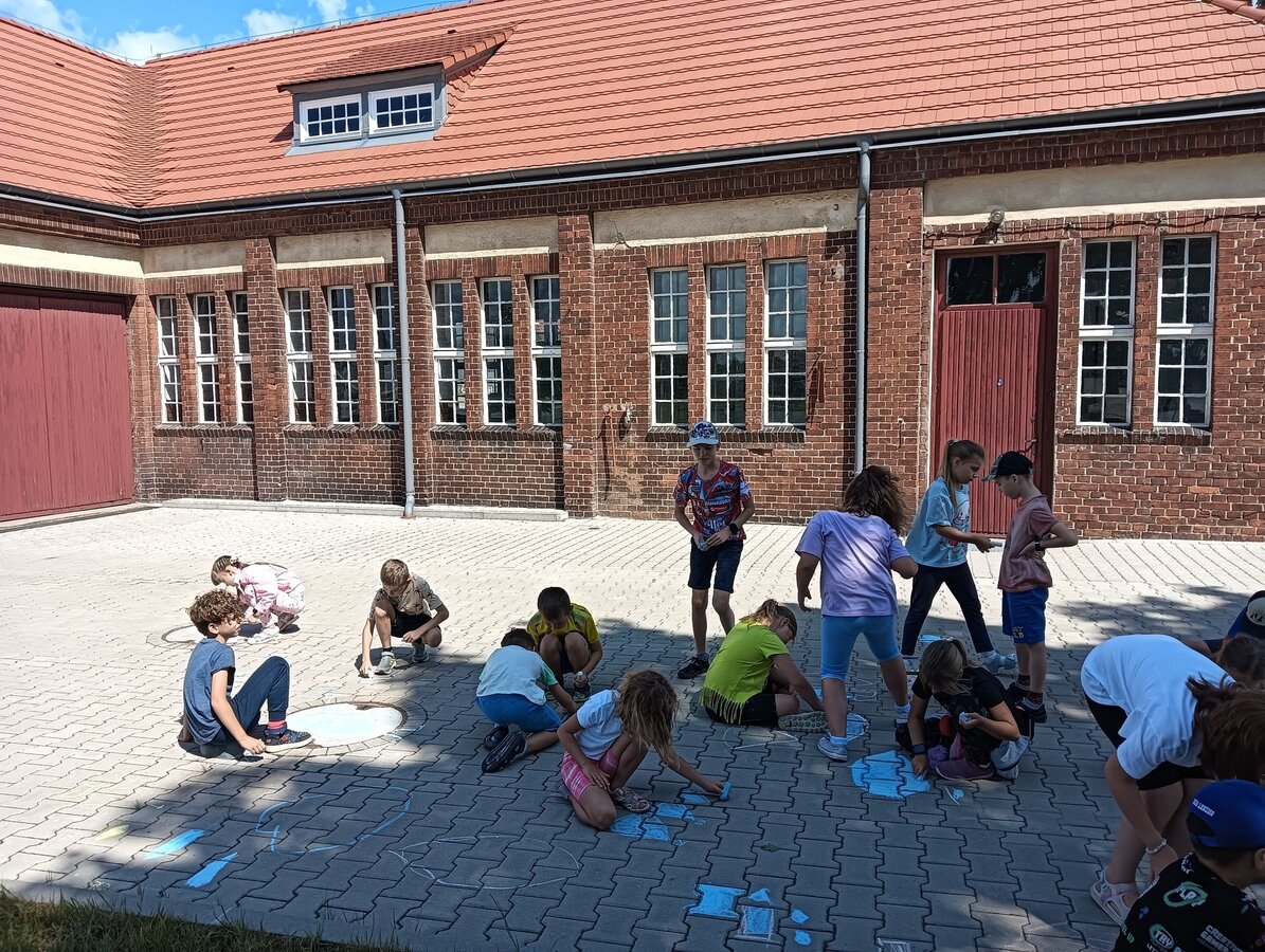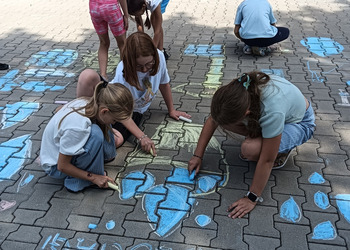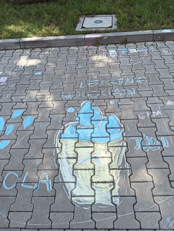 Pogoda dopisała, a dzieci bawiły się wyśmienicie. Malowanie kredami placu przed naszym Muzeum Wodociągów to niewątpliwie była wielka frajda.