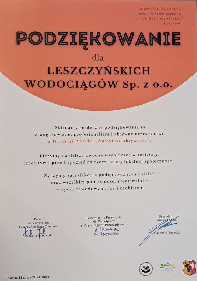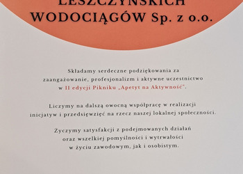 W ramach naszych działań edukacyjnych oraz współpracy ze społecznością lokalną jesteśmy często zapraszani na organizowane w Lesznie eventy, podczas których na naszym stoisku można napić się wody i porozmawiać z pracownikami na temat jej produkcji i jakości.