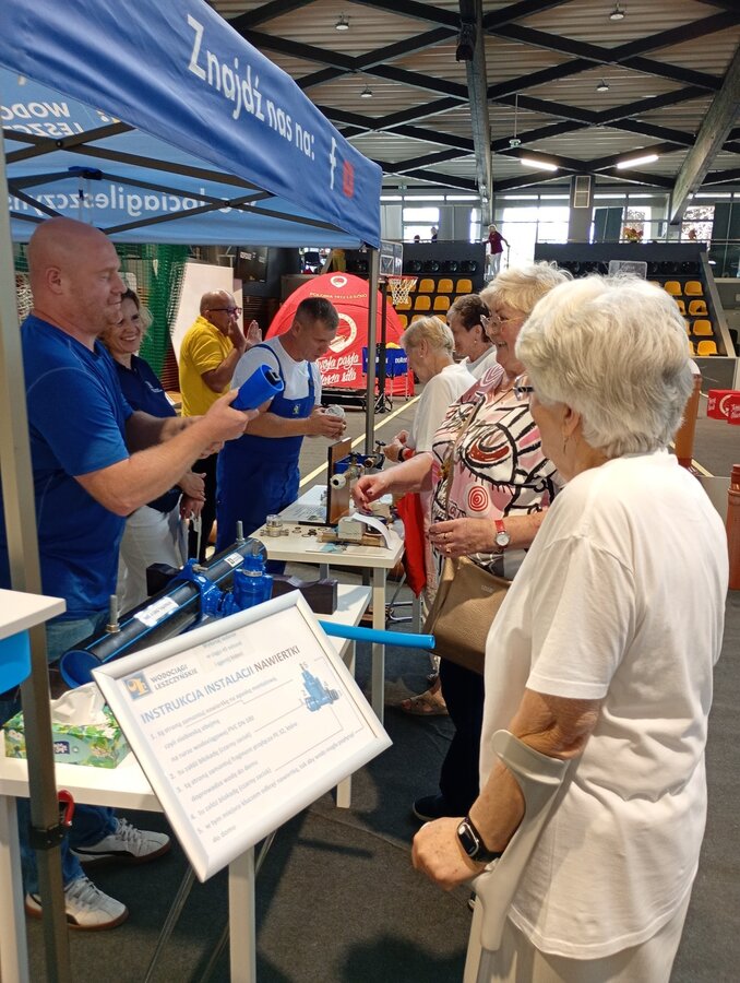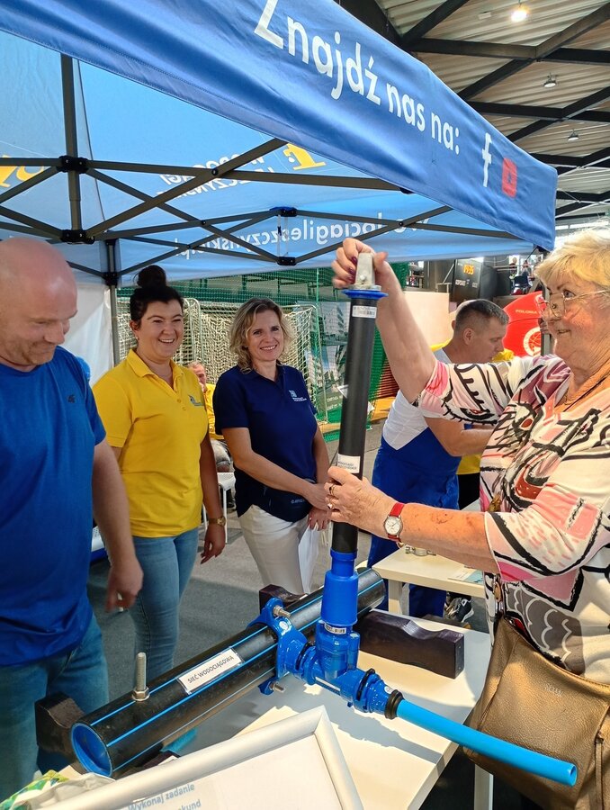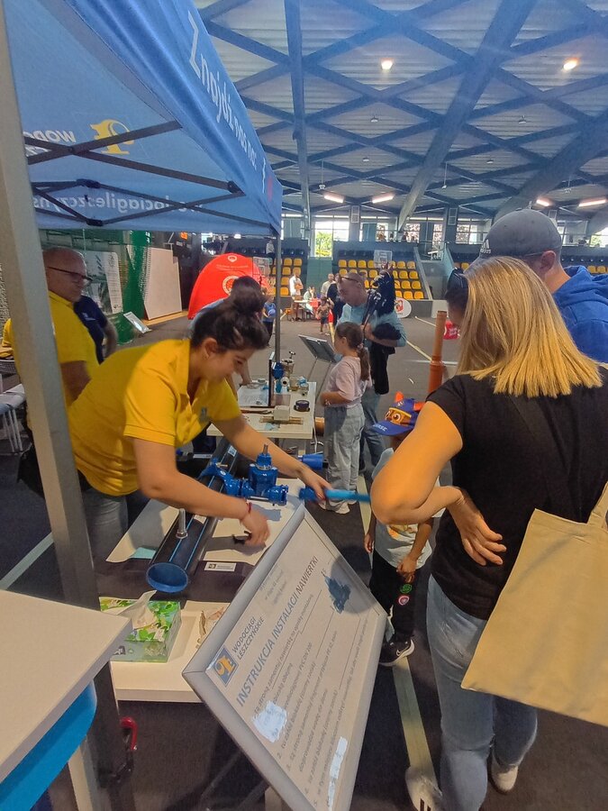 Na naszym stoisku przygotowaliśmy dla mieszkańców atrakcje branżowe. Odwiedzających czekały nie lada zadania do samodzielnego wykonania - montaż nawiertki i przyłącza na sieci wodociągowej oraz montaż wodomierza. Ponadto można było zapoznać się z ekspozycją kampanii Śmieć zatyka sieć oraz obejrzeć rury kanalizacyjne od środka dzięki kamerze do ich inspekcji. Dla najmłodszych... i nie tylko ;-) przygotowaliśmy "wodociągowe" kolorowanki.