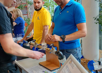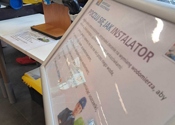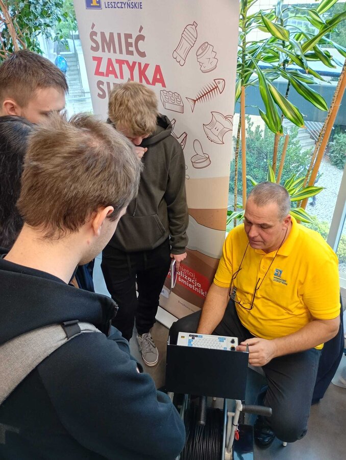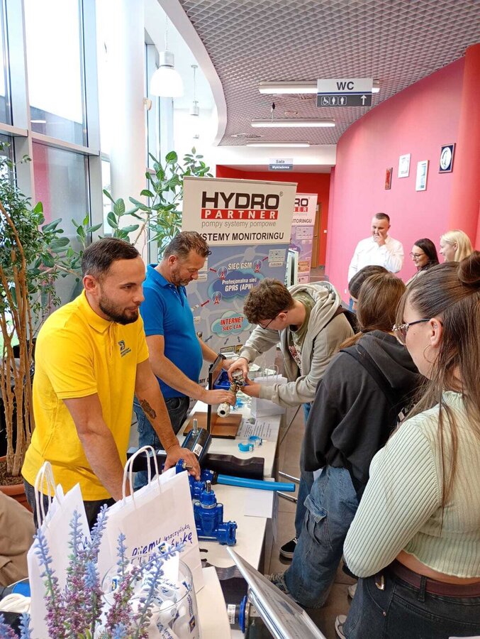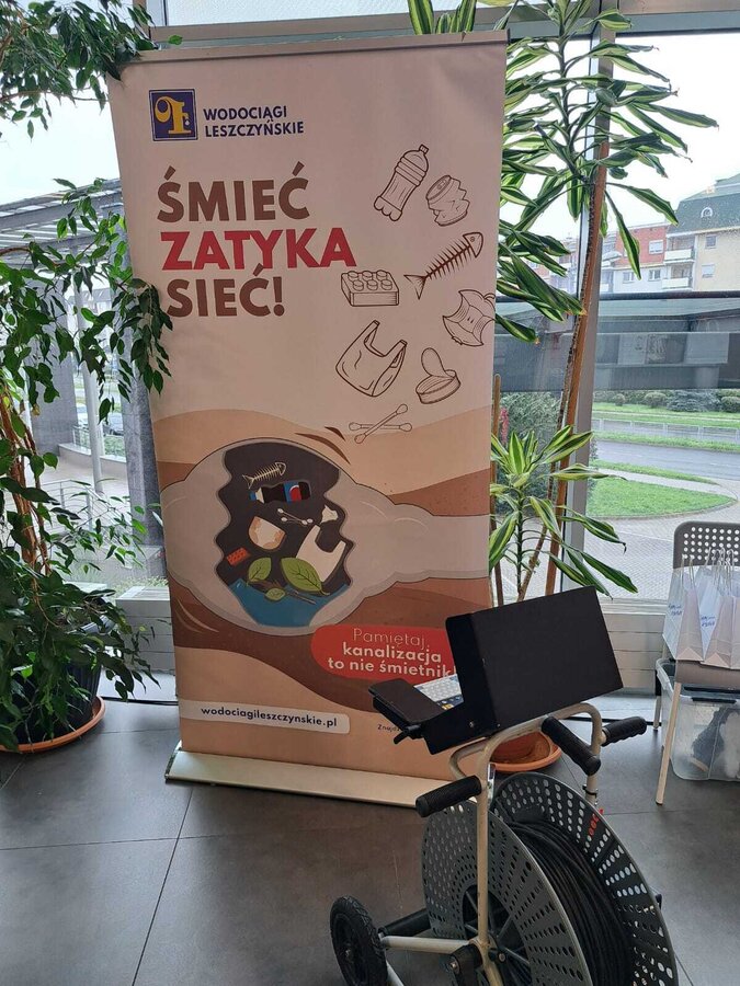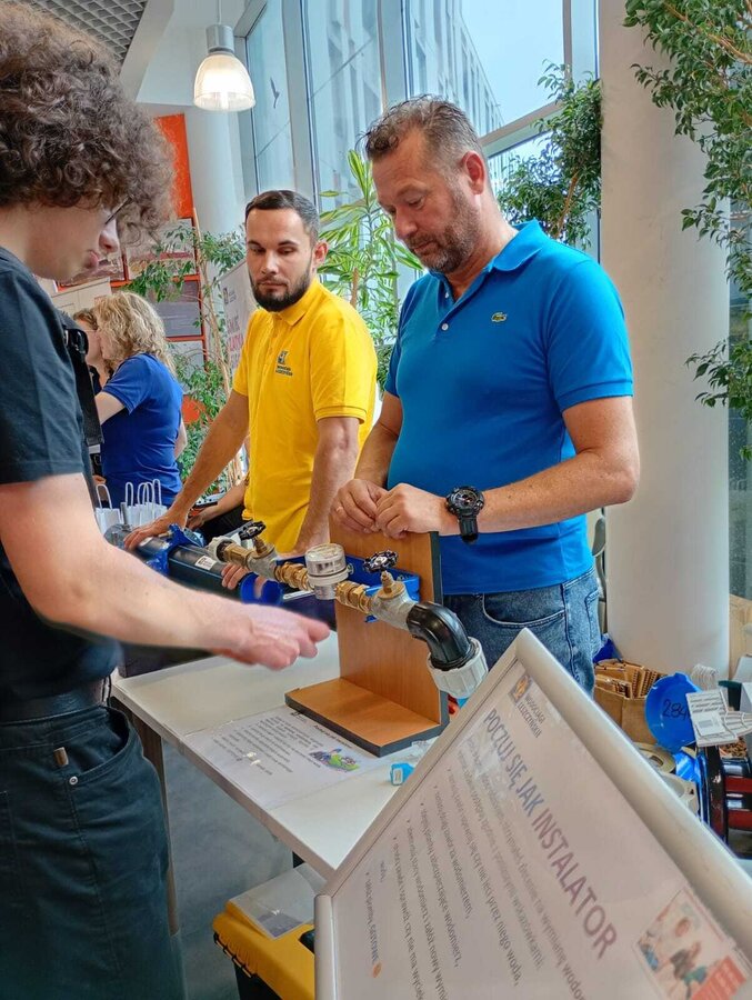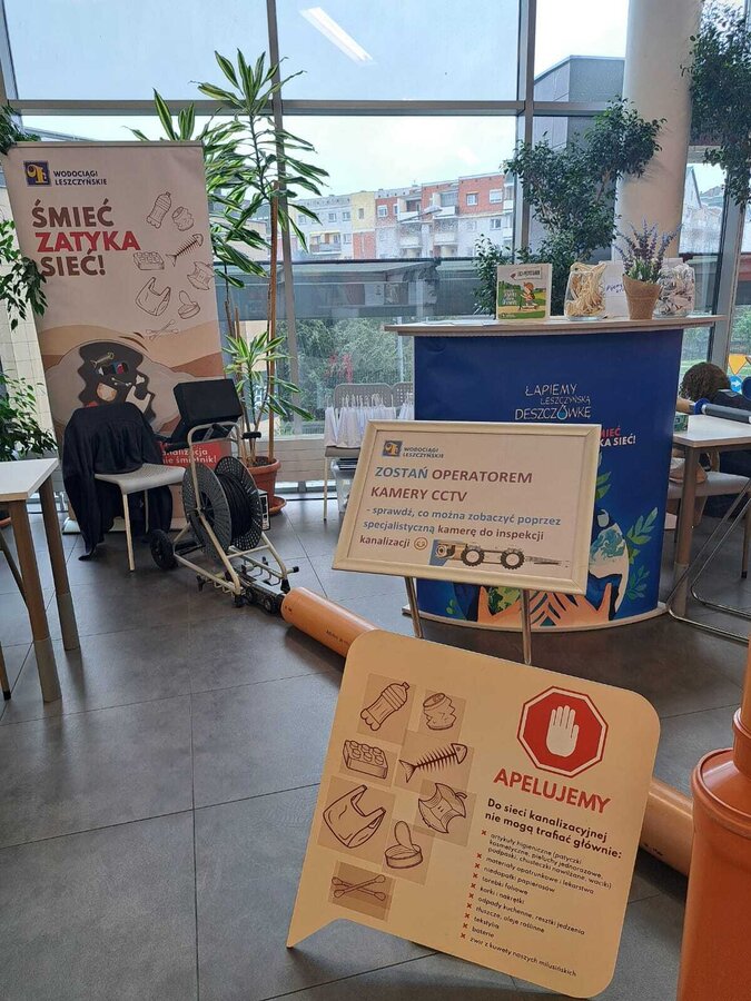Wodociągi Leszczyńskie aktywnie uczestniczyły w wydarzeniu, prezentując swoją branżę i oferując możliwość praktycznych ćwiczeń na stoisku, takich jak montaż nawiertki i wodomierza oraz obsługa kamery do inspekcji kanalizacji.