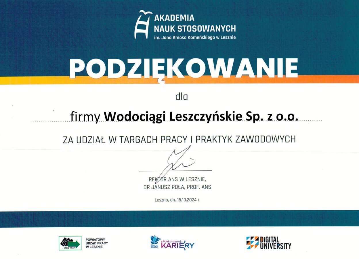 Studenci mogli zapoznać się z ofertą lokalnego rynku pracy. Firmy i instytucje przygotowały naprawdę fascynujące stoiska. Na naszym młodzi ludzie mogli sprawdzić swoje umiejętności techniczne w praktyce - montaż nawiertki na sieci wodociągowej był nie lada wyzwaniem. Pytania i rozmowy dotyczyły możliwości odbycia praktyk, ofert pracy oraz działalności firmy. Młodzi ludzie byli zainteresowani naszą branżą, co bardzo nas cieszy.