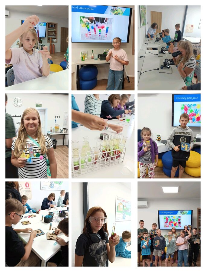 W drugiej części spotkania rozmawialiśmy na temat wody. Obserwacje mikroskopowe i eksperymenty pozwoliły dzieciom odkryć w sobie duszę naukowca, a warsztaty plastyczne pozwoliły wykazać się kreatywnością. Ozdobione logotypy były bardzo oryginalne i niepowtarzalne.