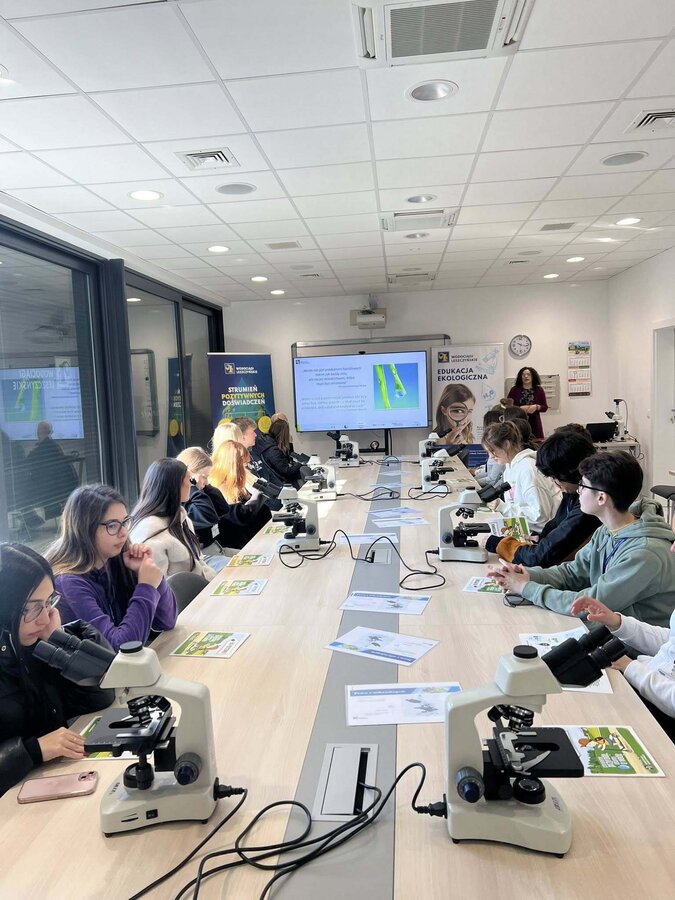 Zorganizowaliśmy dla grupy zwiedzanie Stacji Uzdatniania Wody Zaborowo, pokazaliśmy w jaki sposób woda trafia do mieszkańców, odkryliśmy ciekawe fakty związane z historią naszych Wodociągów. Poczęstowaliśmy naszych gości kranówką. Zaprezentowaliśmy ideę trzech kampanii: Pijemy leszczyńską kranówkę, Łapiemy leszczyńską deszczówkę i Śmieć zatyka sieć. Ponadto zorganizowaliśmy warsztaty mikroskopowe.